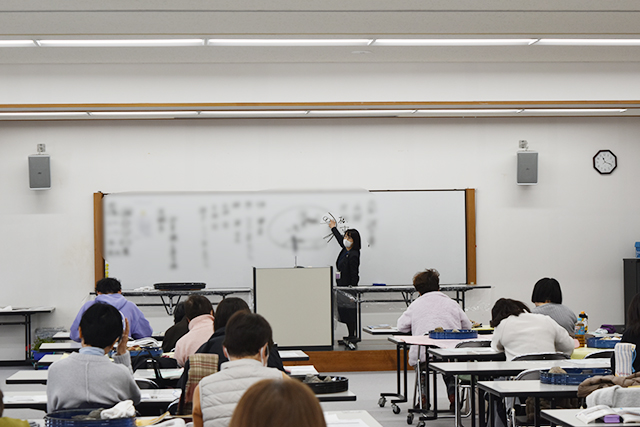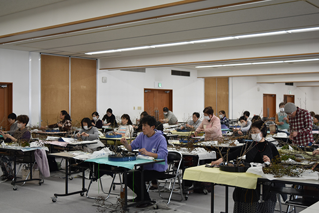 午前は景色いけや嵐峡の景についての説明、挿花が行われました。午後からは参考花の挿花と説明後、実技へと移りました。受講生全員がとても熱心に取り組み、大変充実した時間となりました。