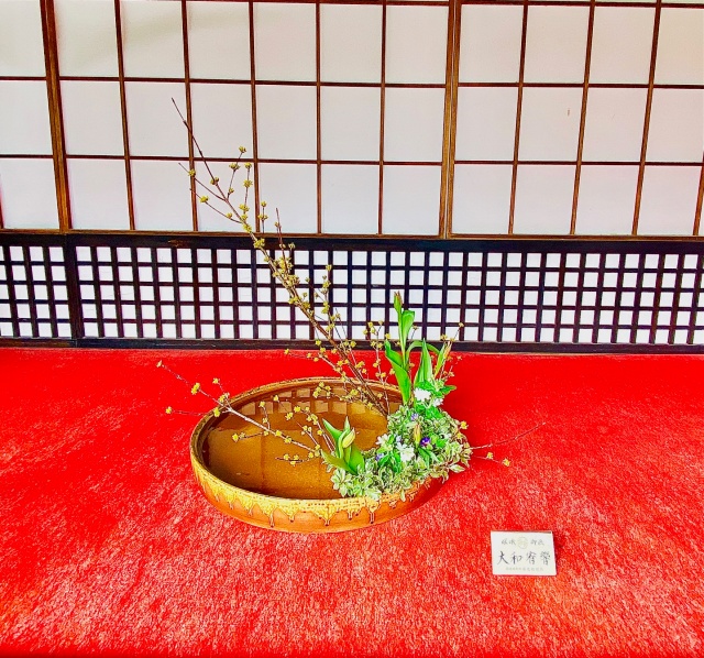 嵯峨伝灯学院生のいけばな作品展示