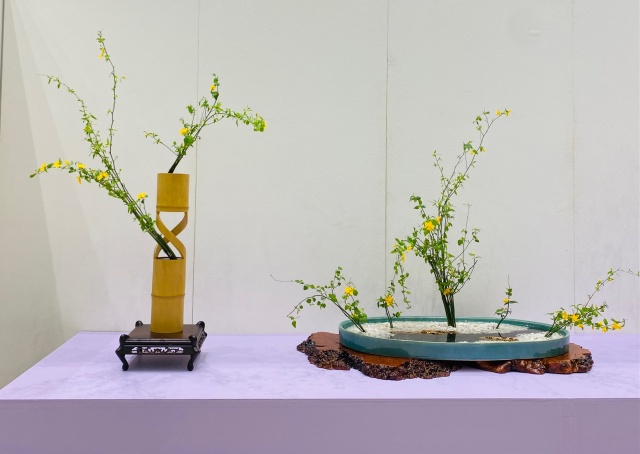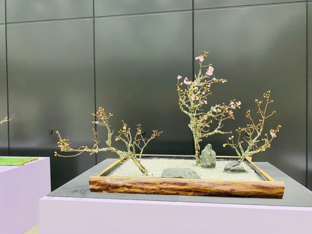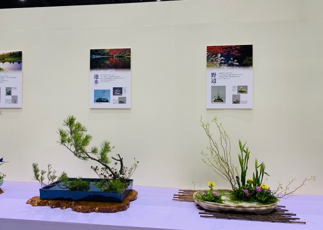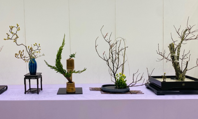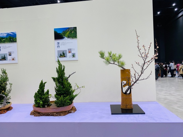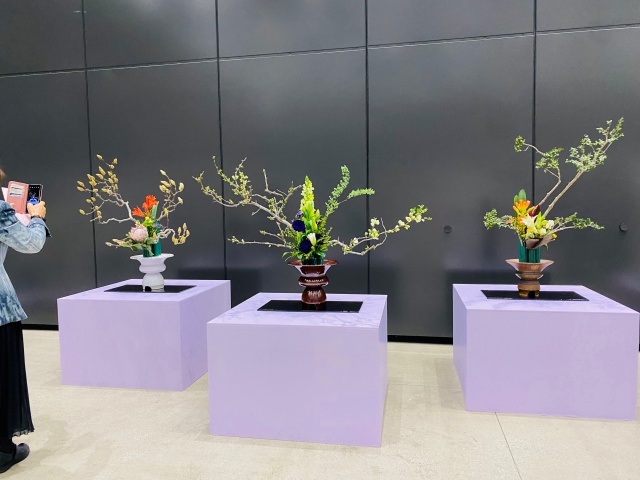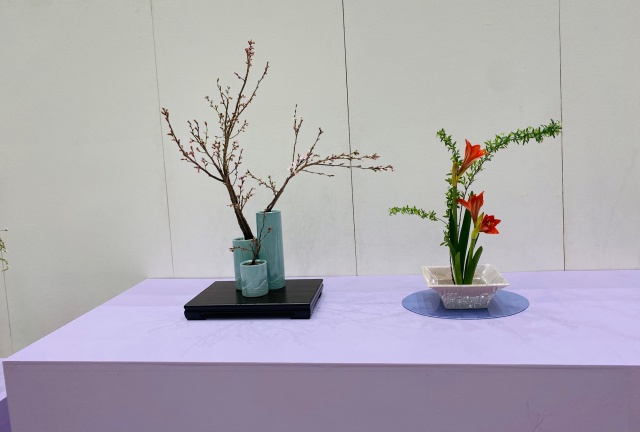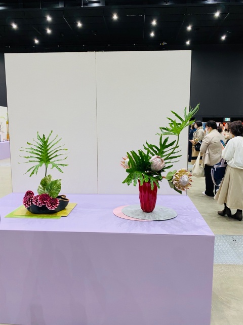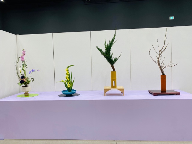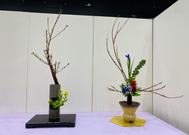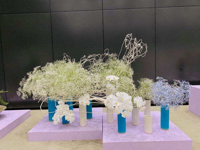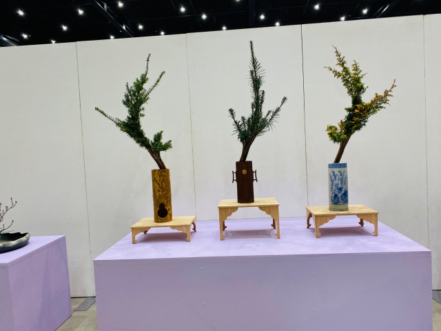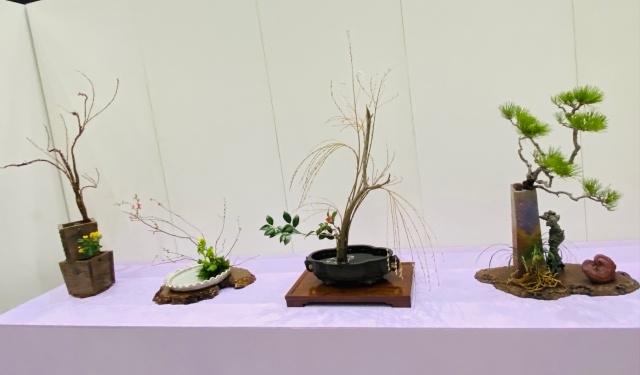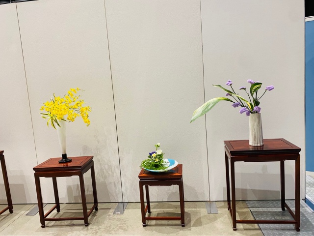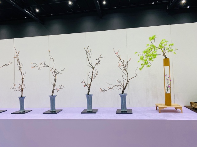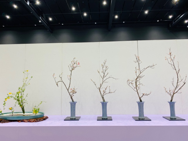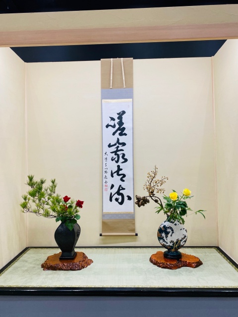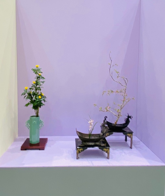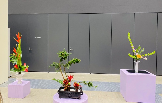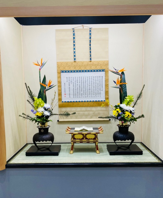 会場はまさに「百福万華」の世界そのもの!心をこめて丁寧にいけられたさまざまな花姿の美しい作品に、圧倒される思いがいたしました。
