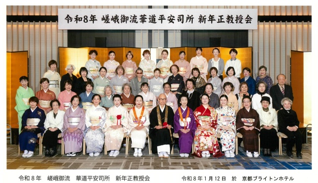 平安司所 新年正教授会 2026.03.21 | いけばな通信 1月12日(月・祝)、京都ブライトンホテルで新年正教授会が催されました。会員による初生け:文人華『歳寒三友』に始まり、新師範加入式が執り行われ、そして祝宴後にはお楽し抽選会も有り、楽しい新春の集いとなりました。 司所長/島満甫