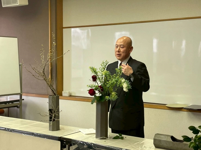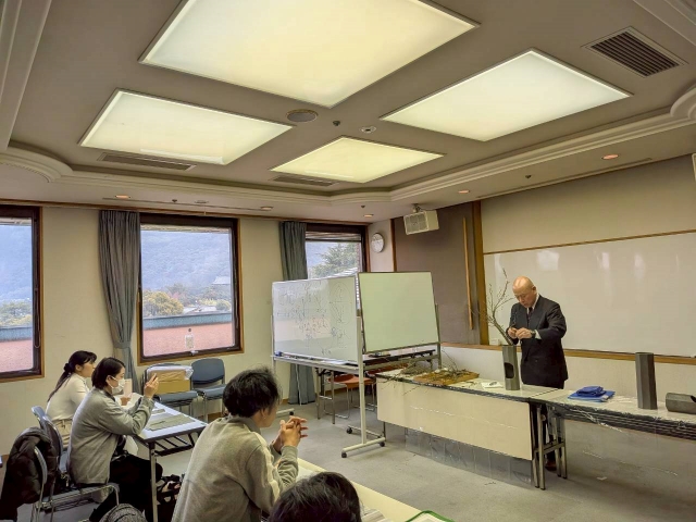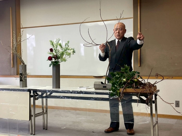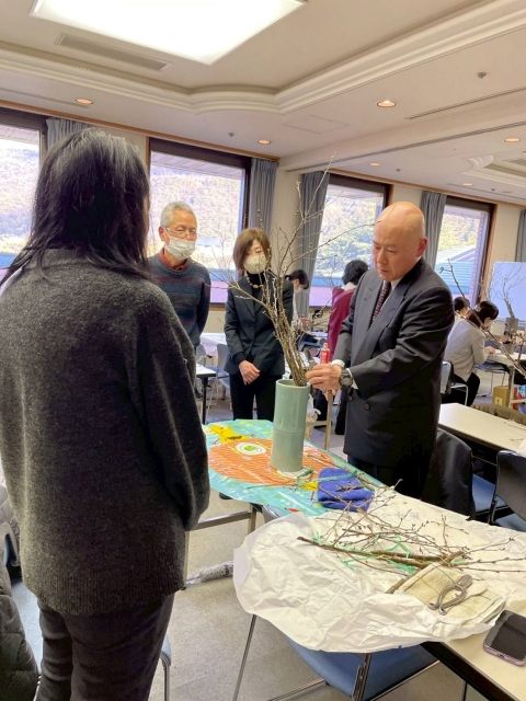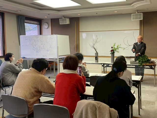 2月11日、kokoka京都市国際交流会館において、村上巨樹華道芸術学院長をお招きし、飛鳥司所85周年を記念として「きざはし」の特別講習会を催しました。