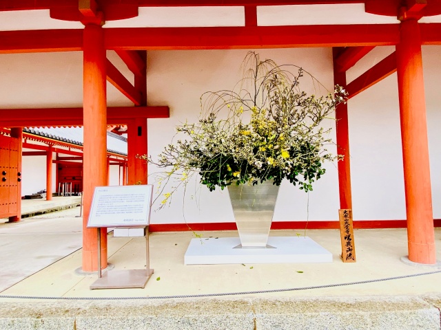 3月29日までの一般公開です。大覚寺嵯峨御流、仁和寺御室流、泉涌寺月輪未生流、の3作品が紫宸殿東回廊に飾られています。