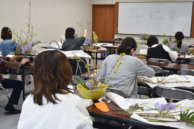 いけばな初心者を対象にした「大覚寺いけばな教室」冬コースの5回目の授業が、3月28日(土)、華道芸術学院で開催されました。