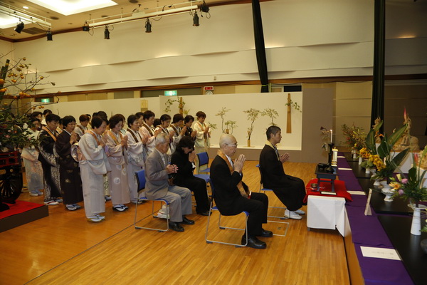 ひかみ司所創立40周年記念華展が開催されました 2016.12.16 | 講座・イベント情報 10月15、16の両日、丹波市のゆめタウンPOP UP HALL(ポップ アップ ホール)で田村快光財務部長ほか多数の来賓を迎えて開催しました。慈しみの心、愛しさをもって挿花する「草和花(そわか)」というテーマを設定。舞台には五大明王をまつり、嵯峨好「そわか」にいけあげた荘厳華をはじめ、青竹を使っての大作「竹林の宴」、伝承花など50作を展示し、多くの参観者に展覧いただきました。